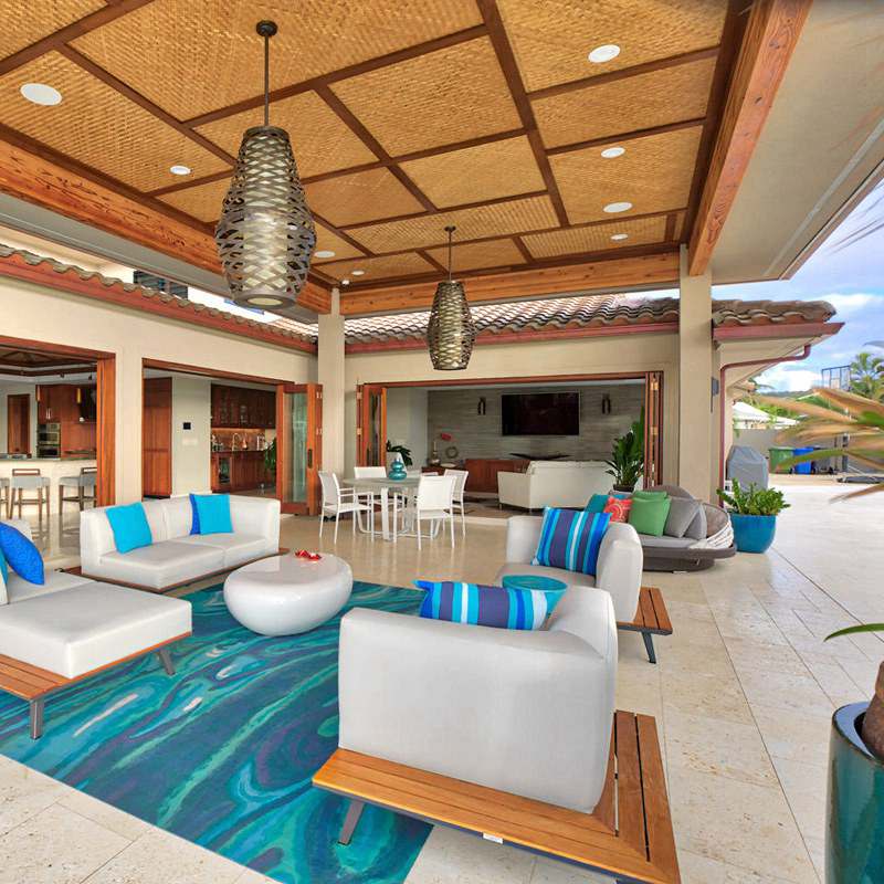 شرفة ذات سقف من القش الصناعي توفر الهياكل الظل ومكانًا للترفيه في الهواء الطلق. تحظى الأكشاك بشعبية كبيرة في الحدائق العامة والساحات الخلفية. يمكنها تغيير مظهر حديقتك الخلفية باستثمار بسيط نسبيًا، وذلك باستخدام بلاط القش البلاستيكي كمواد لتغطية الأسقف. أنماط متنوعة من سقف من القش الاصطناعي للشرفة تُقدّم الشرفات ذات الأسقف المصنوعة من القش أفكارًا مذهلة للمهندسين المعماريين وأصحاب المشاريع، فهي مثالية لتوفير الظل من الشمس والحماية من المطر. القش الصناعي لا تقتصر مزايا بعض المواد على مقاومتها للأشعة فوق البنفسجية فحسب، بل تشمل أيضاً مقاومتها للماء، مثل بلاط أسطح سعف النخيل. بعض المواد الأخرى ليست مقاومة للماء، ولكن لا مشكلة في استخدامها في المناطق ذات الأمطار الغزيرة، وذلك باستخدام أقمشة أو أغشية مقاومة للماء.
