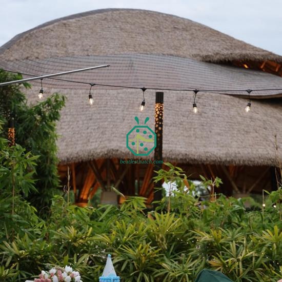 سقف بيتلز المصنوع من القش الصناعي مناسب للاستخدام في بيئة تايلاند ذات الرطوبة العالية وأشعة الشمس القوية. أكثر من 30 تصميمًا للاختيار من بينها.