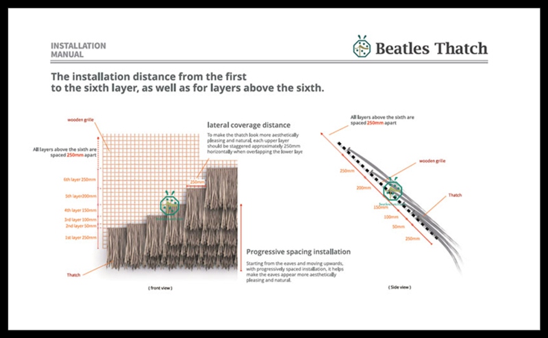 As synthetic thatch roof is much easier for installation than natural nipa or cogon roof, so, besides our local distributors could help you arrange the nipa/cogon thatch roof installation, you could look for your local construction companies for installation too. We would provide necessary assistance for the thatch installation. We have installation manual for your reference: