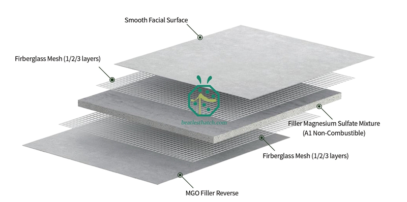 ألواح أكسيد المغنيسيوم مُدعّمة بطبقات متعددة من شبكة الألياف الزجاجية، مما يمنحها قوة عالية لمقاومة الرياح القوية والصدمات. وباعتبارها مادة معدنية غير عضوية، فهي تقاوم تلف النمل الأبيض والتآكل الفطري، مما يجعلها أكثر موثوقية من ألواح الخشب التقليدية.