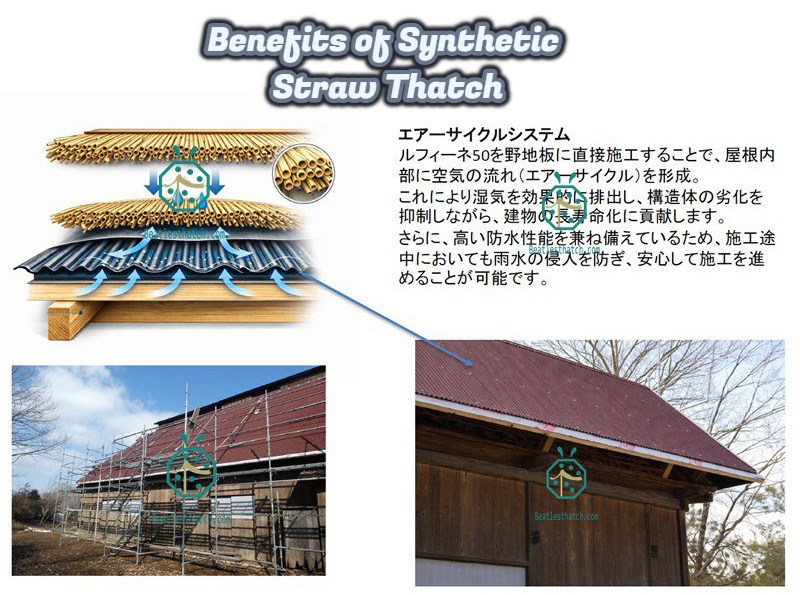 أكمل وكيلنا الياباني المعتمد بنجاح مشروع ترميم تراثي في محافظة ياماغاتا، حيث استبدل القش الطبيعي المتآكل والمتساقط على المباني التقليدية بمنتجاتنا المتميزة. بلاط السقف المصنوع من القش الصناعي .